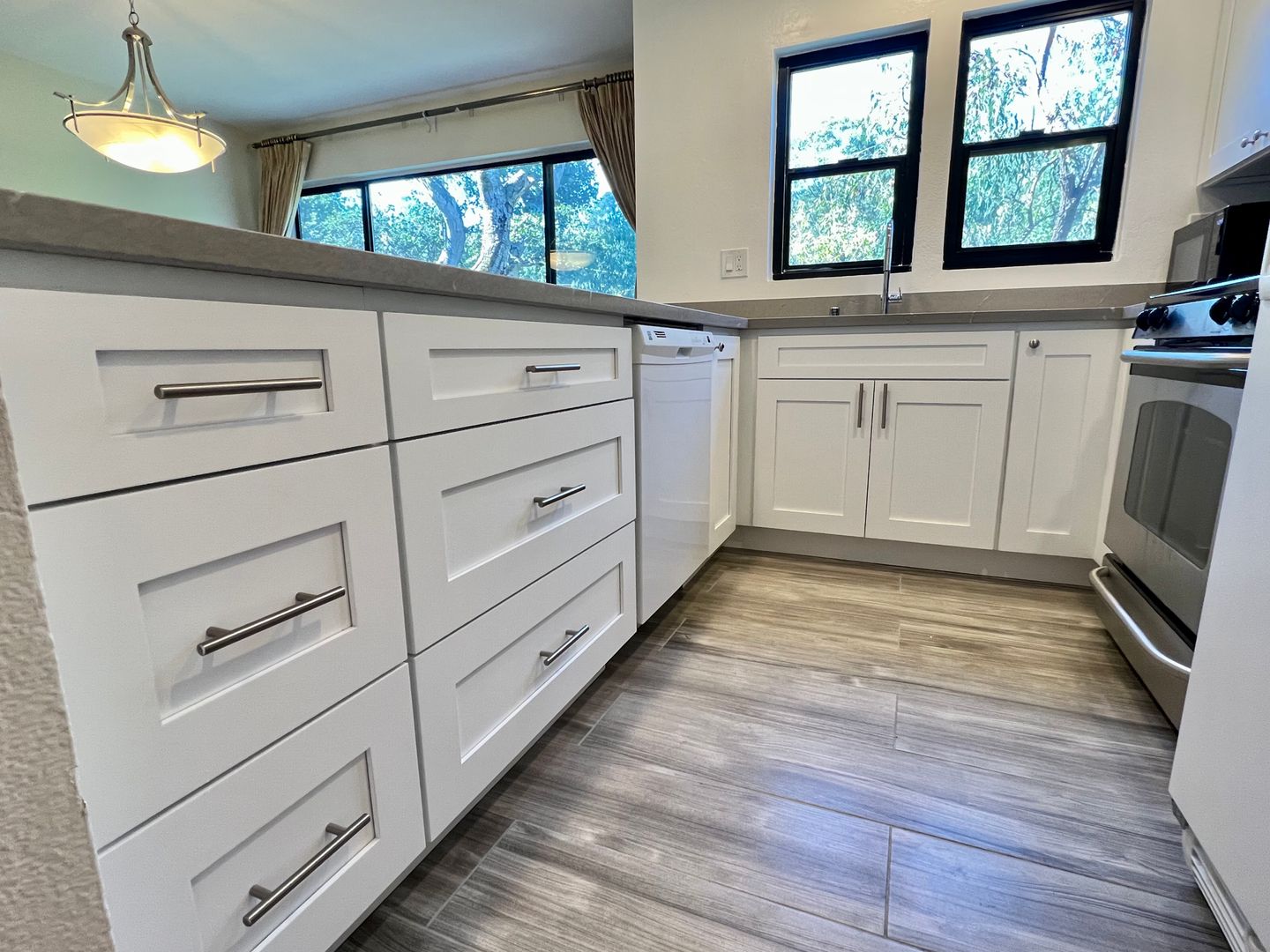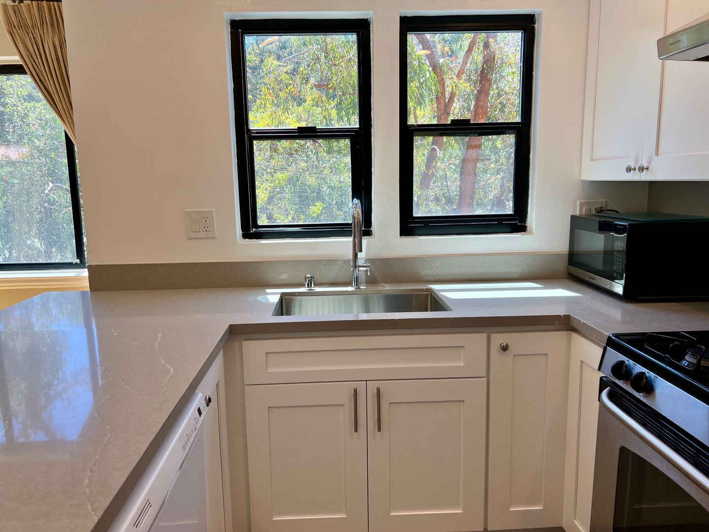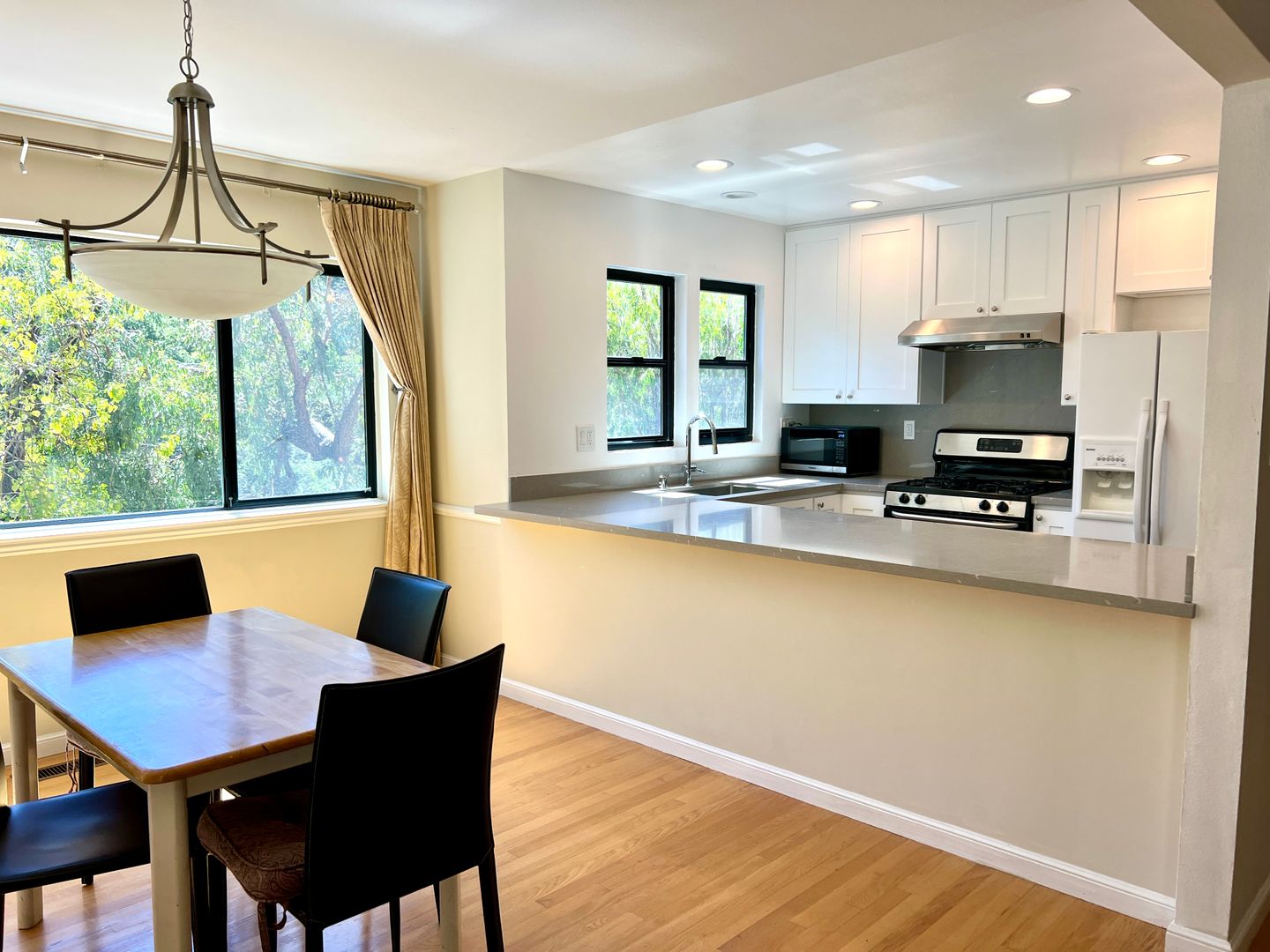 Enjoy this private & sunny home with lots of space and a beautifully redone kitchen & all bathrooms.