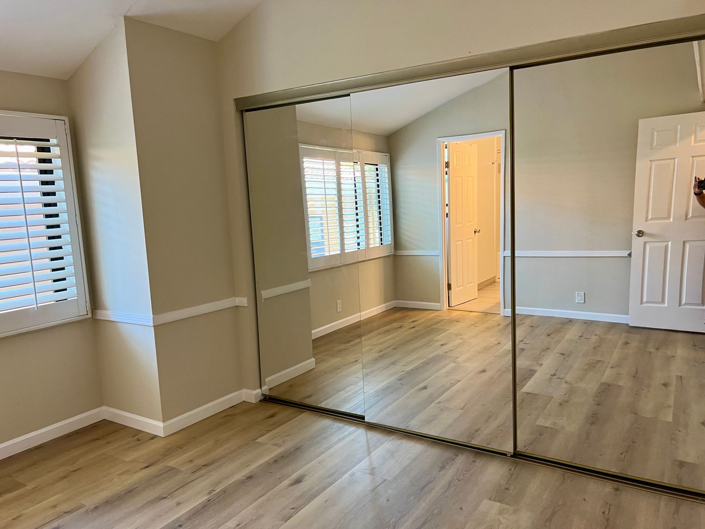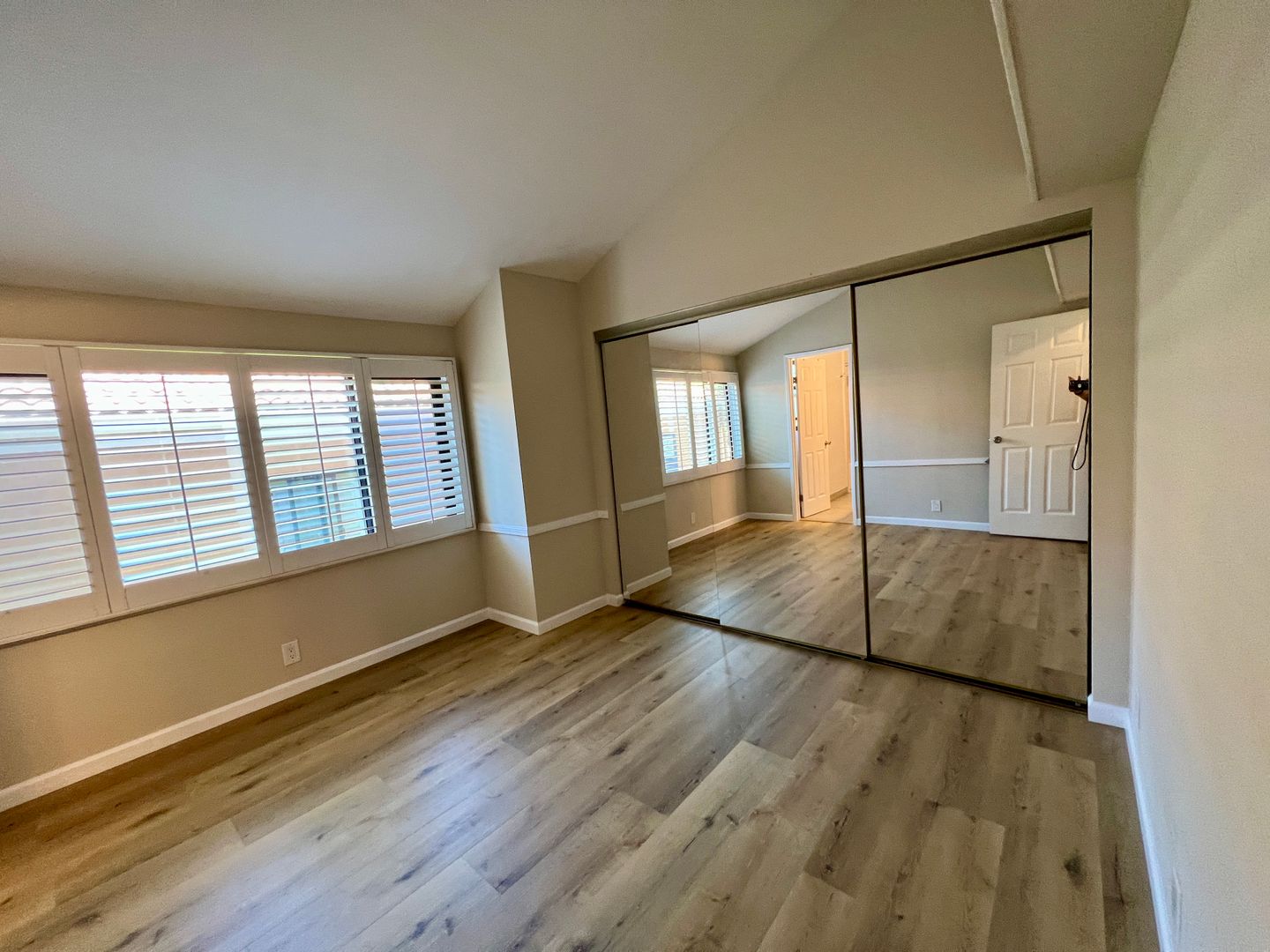 Perfect floorplan: Spacious easy living communal area and a private office/den off behind french doors for the home office worker. Two primary suites, cathedral ceilings, 2.5 modern bathrooms, and easy maintenance wood-look laminate floors throughout. Upstairs laundry area for convenience.